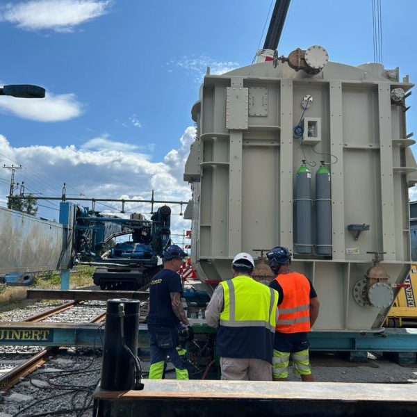 – Oftast lossas transformatorer i Norrköping, men denna var en klass i sig så vi fick hitta en alternativ plan, berättar Tina Hofverberg, produktionsplanerare på Railcare.